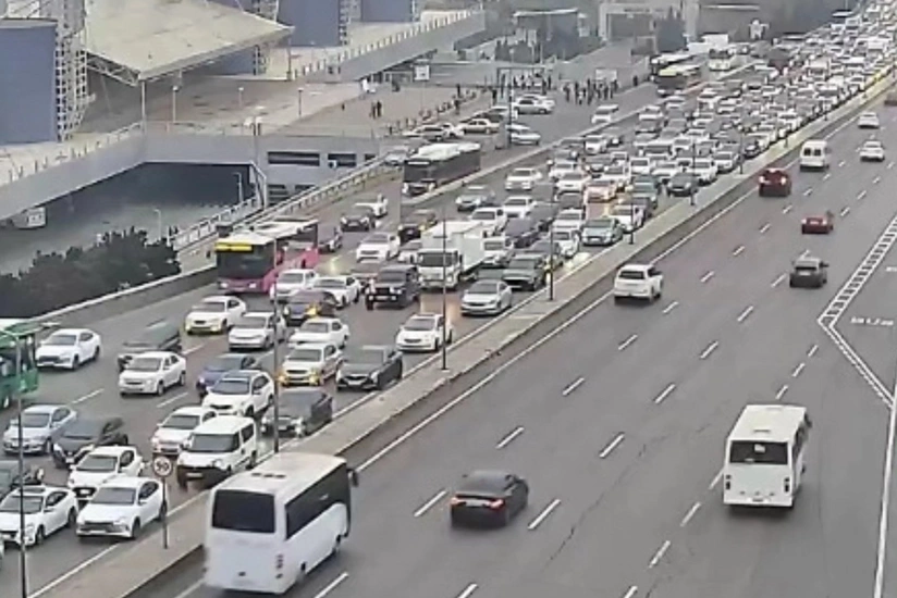 Bakının bir sıra yollarında nəqliyyatın sıxlığı yaranıb.