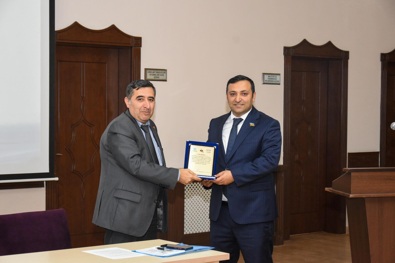 Çıxışların sonunda Cəbi Quliyevə CASCFEN-in təşəkkür plaketi təqdim edilib.