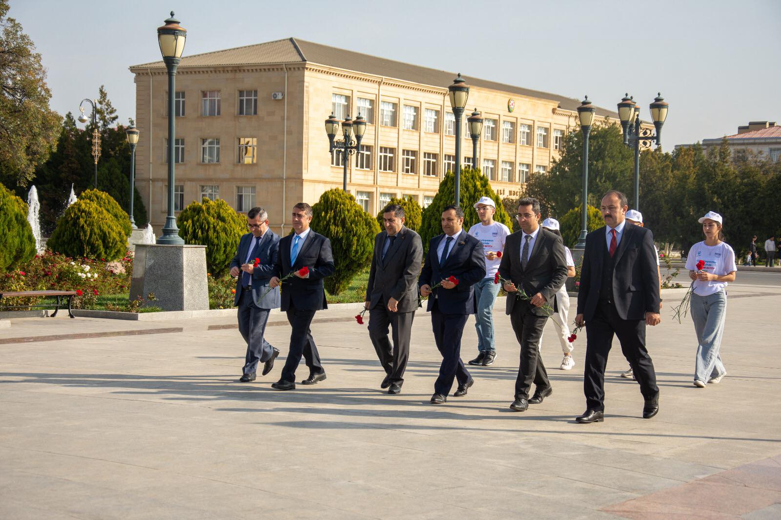 Sonra Ulu Öndər Heydər Əliyevin və torpaqlarımızın azadlığı uğrunda canlarından keçən əziz şəhidlərin ruhu bir dəqiqəlik sükutla yad edilib. Dövlət Himni oxunub.
