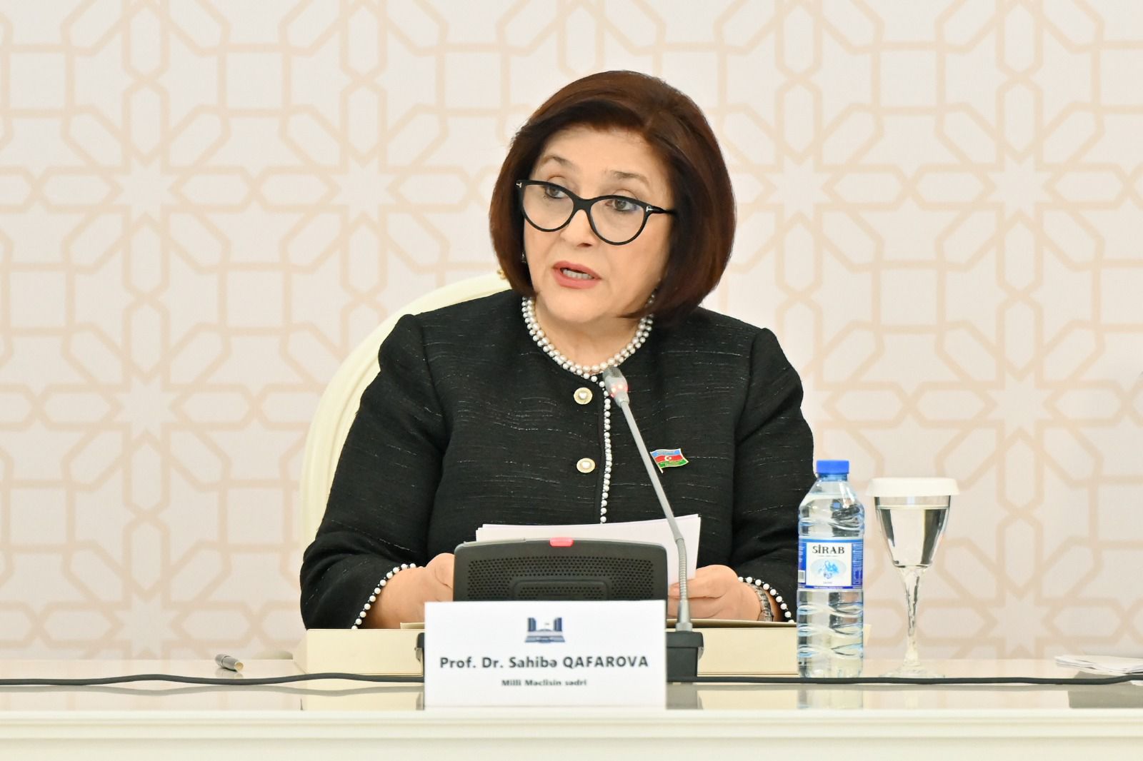 Spiker xatırladıb ki, Azərbaycan Prezidenti İlham Əliyev noyabrın 3-də Azərbaycan Milli Elmlər Akademiyasının 80 illik yubileyinə həsr edilən tədbirdə qeyd edib ki, Azərbaycan dilinin saflığının qorunması hər bir Azərbaycan vətəndaşının işi olmalıdır. Milli Məclisin sədri vurğulayıb ki, dövlət başçısının bu çağırışı dil məsələsinin təkcə dövlət orqanlarının deyil, bütün cəmiyyətin üzərinə düşən milli məsuliyyət olduğunu göstərir.