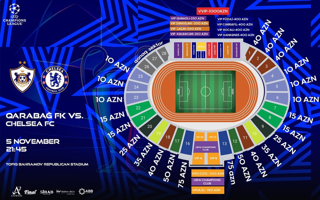 Qeyd edək ki, “Qarabağ” – “Çelsi” oyunu noyabrın 5-də Tofiq Bəhramov adına Respublika stadionunda, saat 21:45-də start götürəcək.